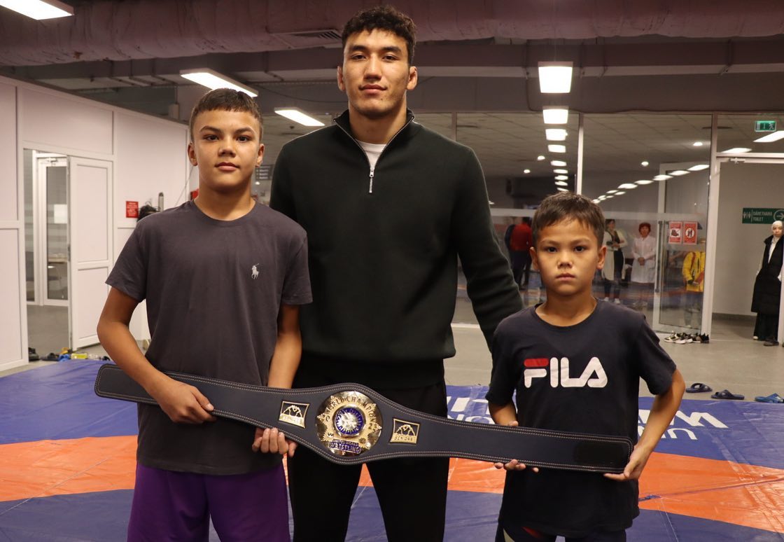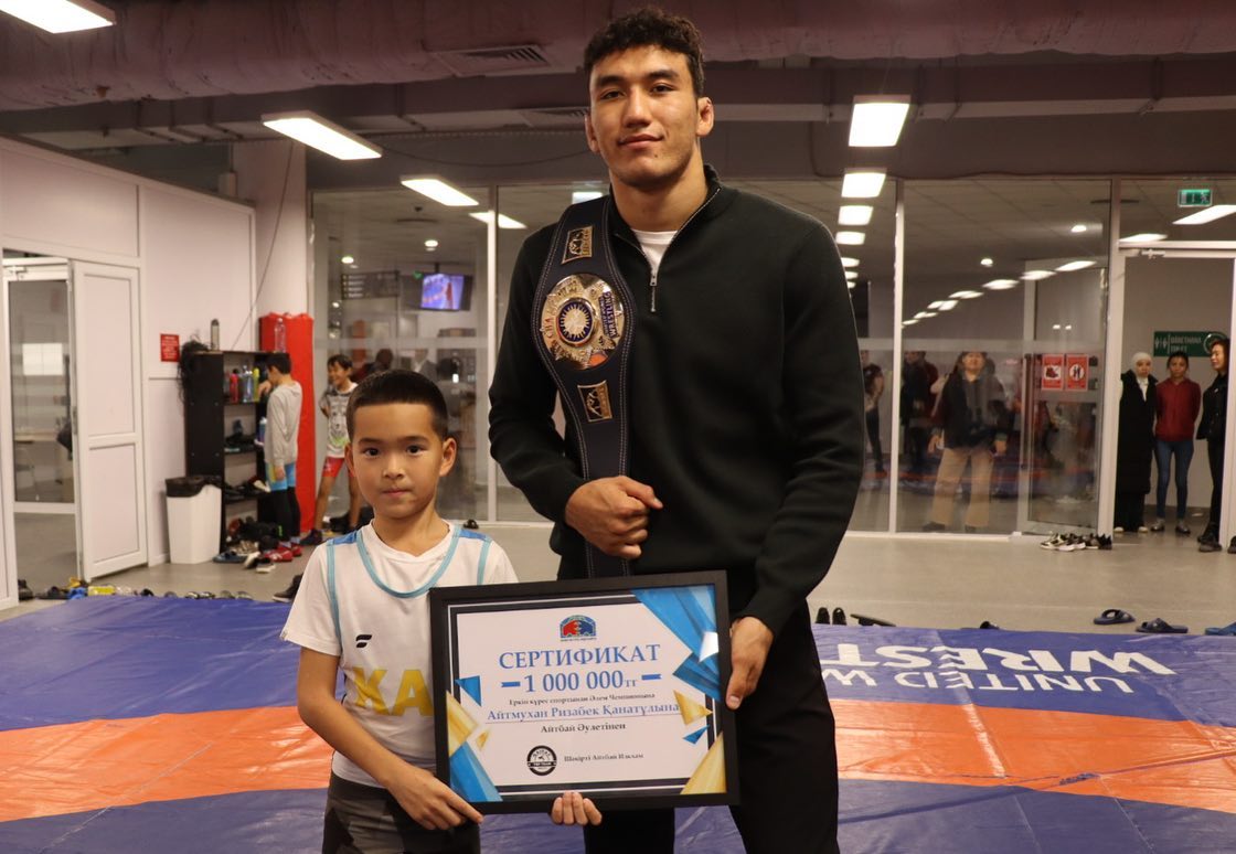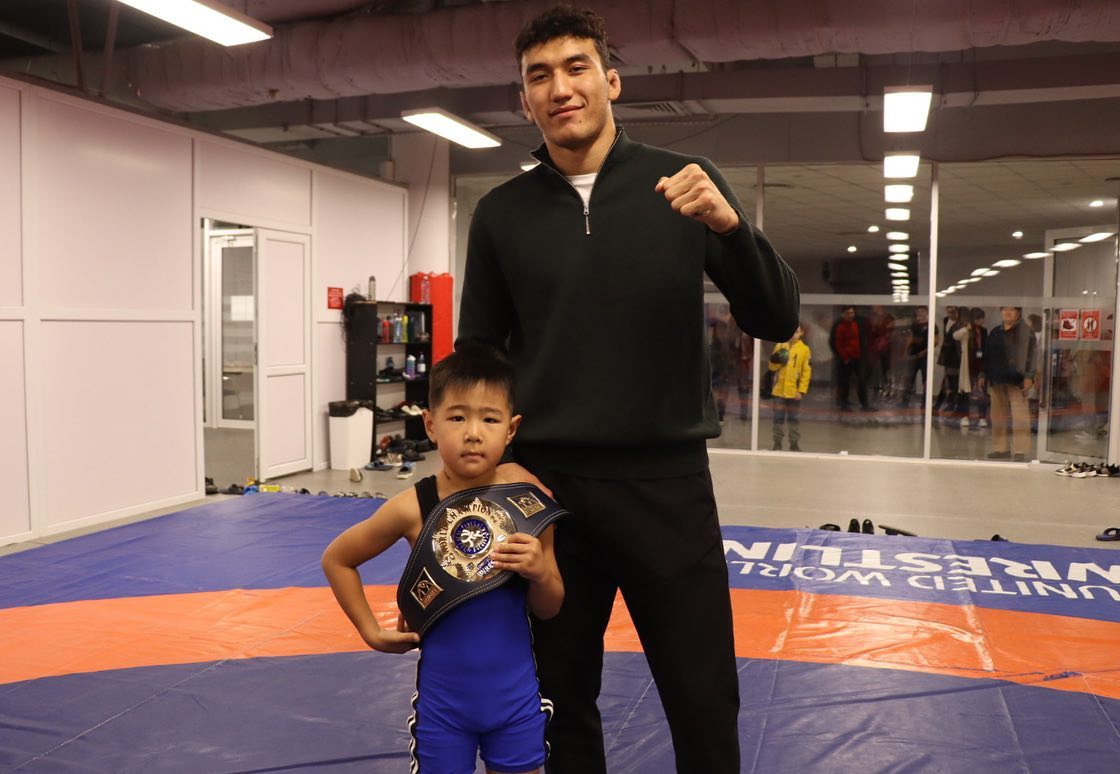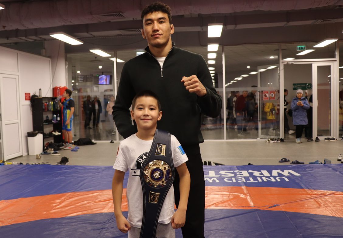 Сегодня первый в истории независимого Казахстана чемпион мира по вольной борьбе Ризабек Айтмухан встретился с молодыми спортсменами клуба "Qairat top team", которые тренируются во Дворце единоборств им. Ж.Ушкемпирова
