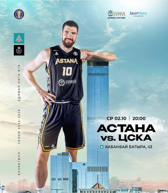 2 қазан күні кешкі сағат 20:00-де Жақсылық Үшкемпіров атындағы жекпе-жек сарайында отандық «Астана» баскетбол құрамасы ЦСКА командасымен бақ сынасады.