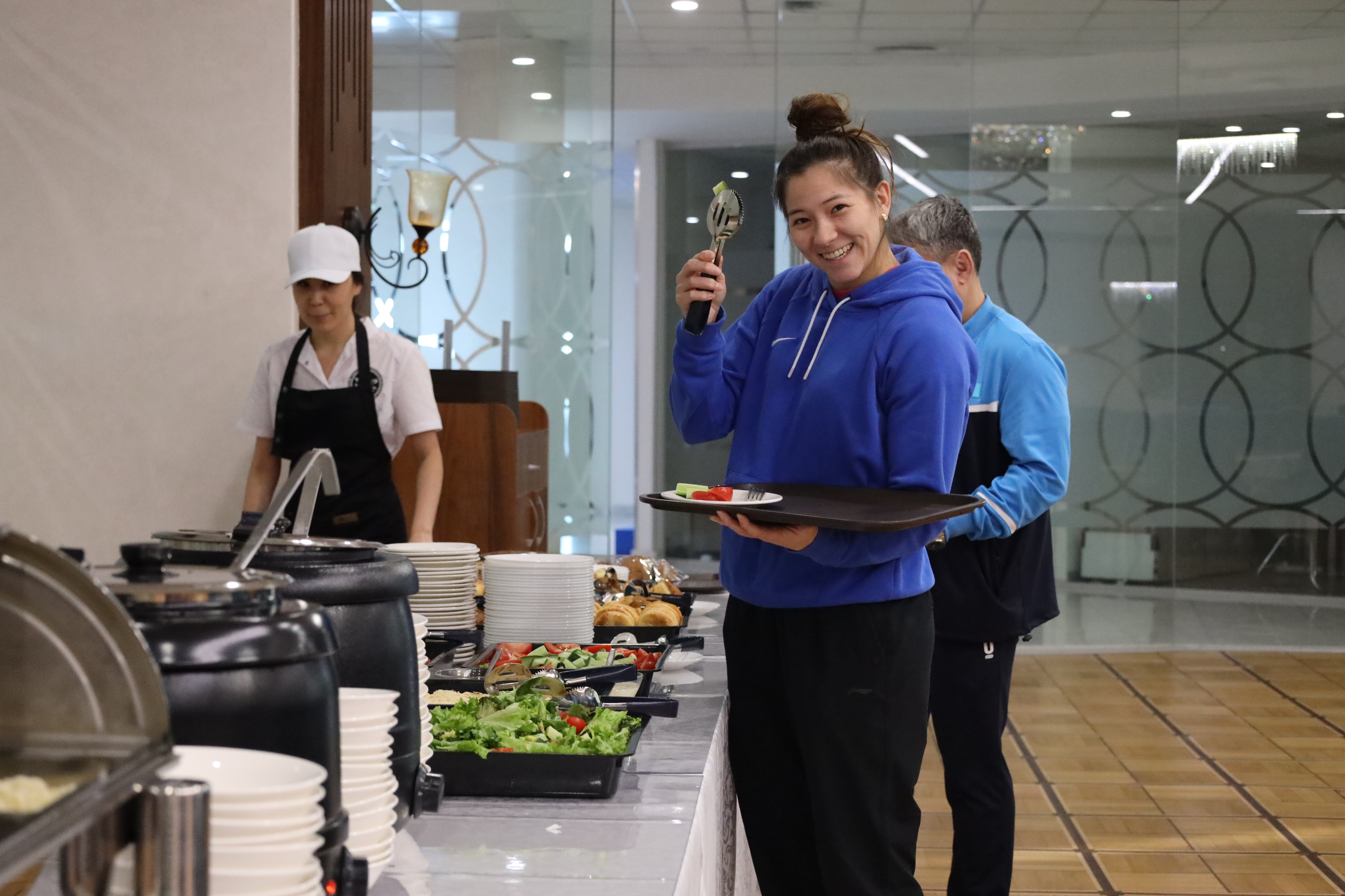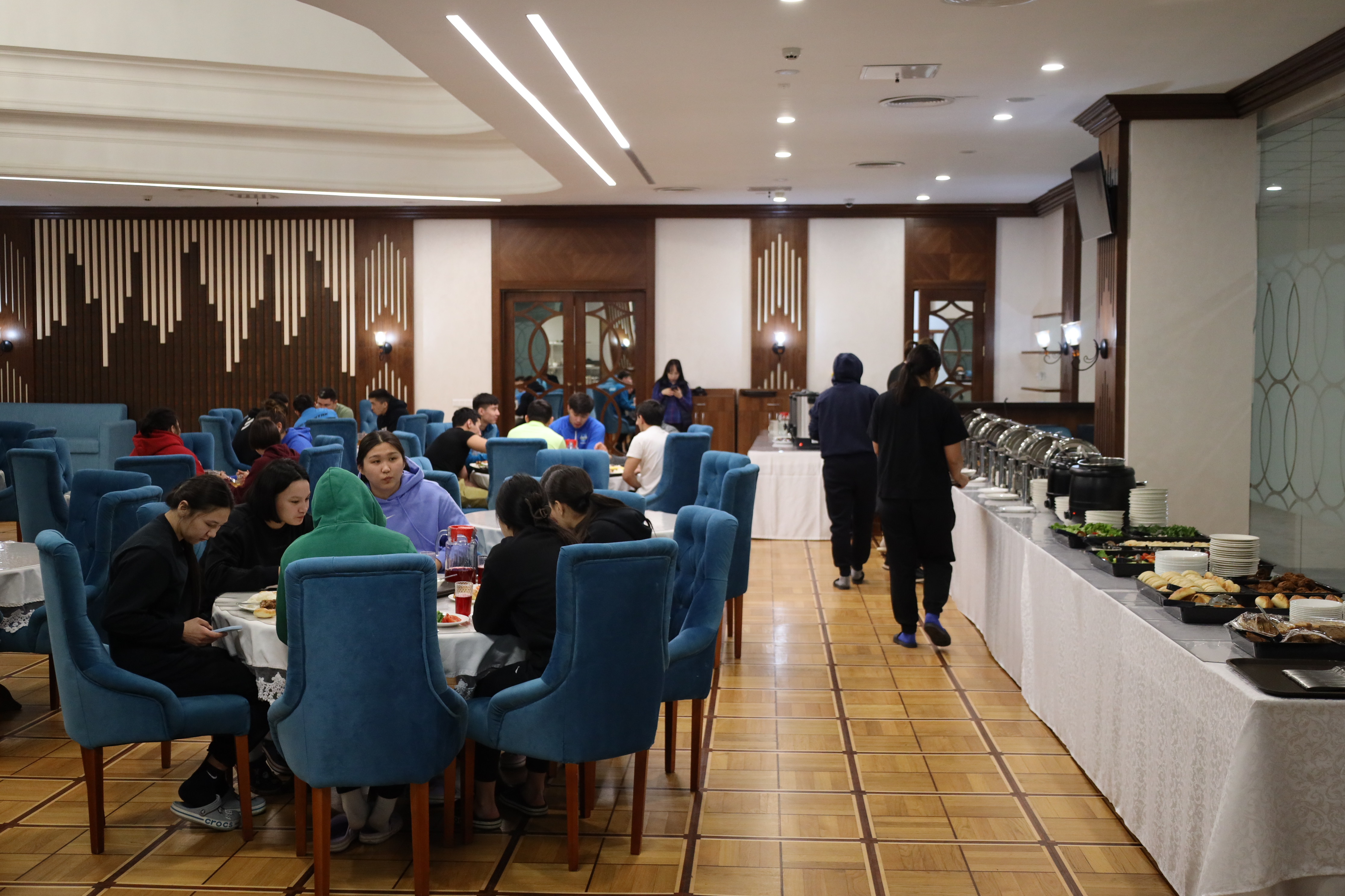 Жақсылық Үшкемпіров атындағы Жекпе-жек сарайында спортшылардың жайлы тұруы мен дұрыс тамақтануы үшін барлық жағдай жасалған.